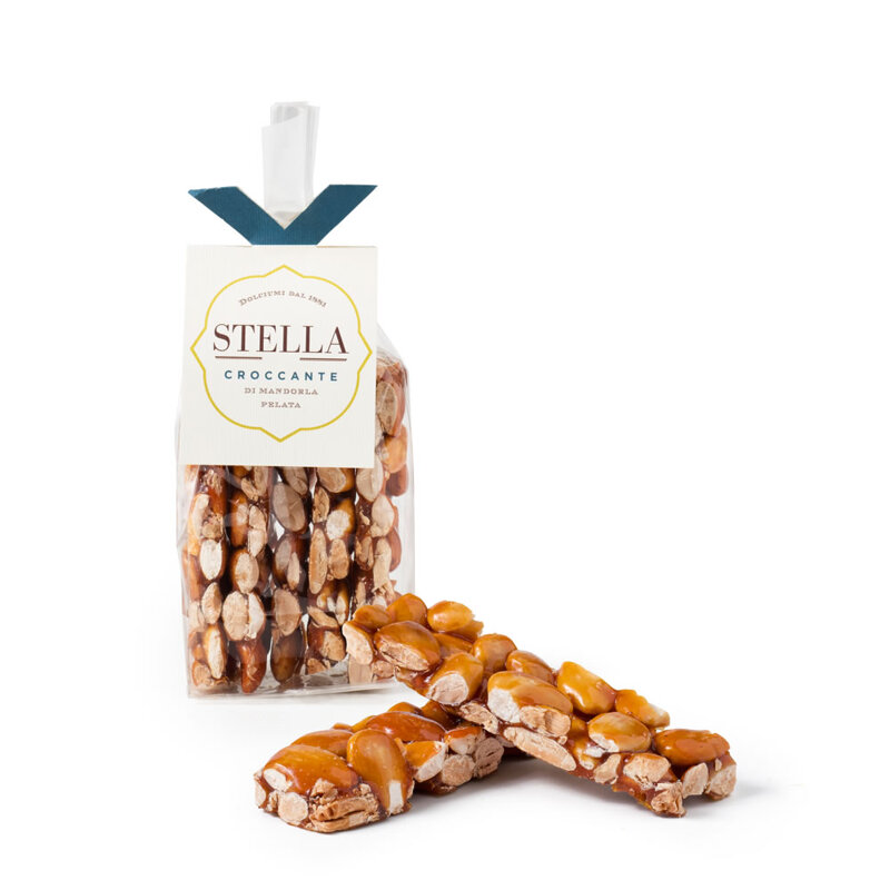 Copeta salentina: croccante di mandorle italiane pelate e tostate ricoperto da un sottile strato di zucchero caramellato.